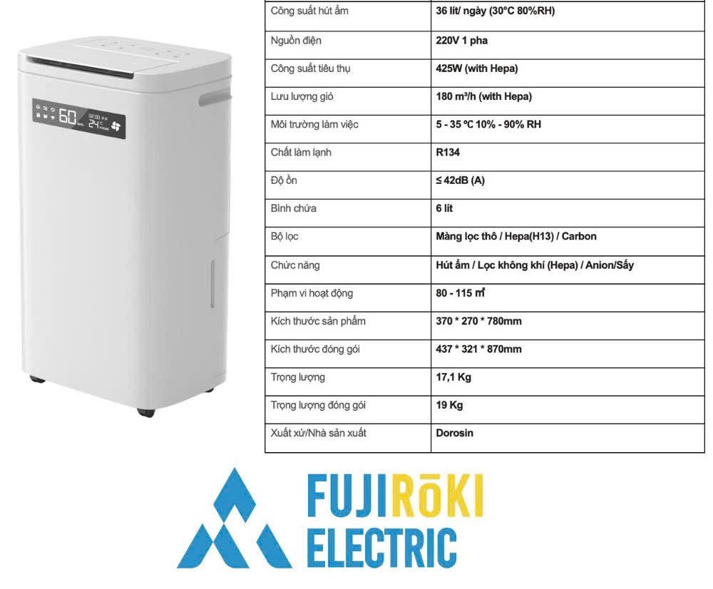 🌧️ MÁY HÚT ẨM – LỌC KHÔNG KHÍ FUJIROKI FJ-36XW 🌧️